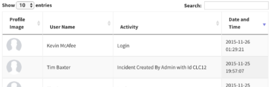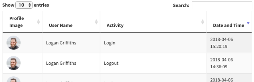 Managers have the ability to track the activity of all Users in the organisation. Each activity is date and time stamped and also the name of the activity, from logging in to submitting forms.