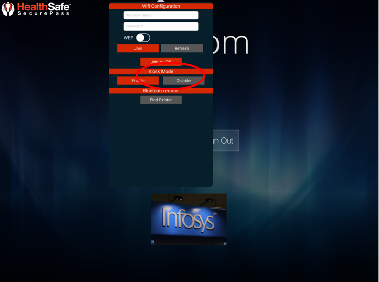 3) Under Kiosk Mode, Press the 'Disable' button which will open the camera and then show the QR Code to the iPad's camera.