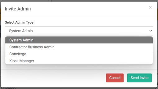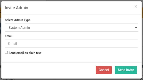 Once you have selected “Invite Admin” the below pop-up will appear: