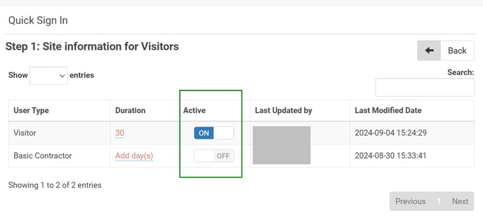 - Ensure the status of the Quick Sign In feature is set to Active for it to be live.